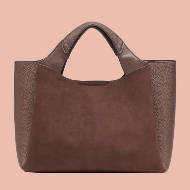 - Dual top handles with an optional adjustable crossbody strap